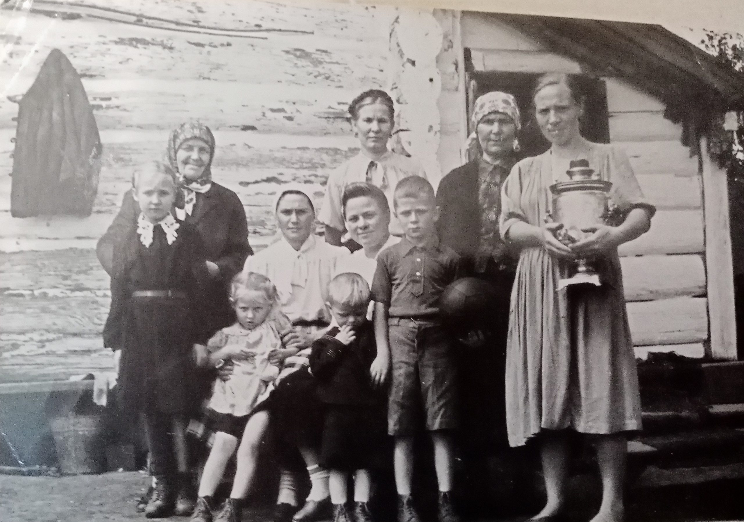 Русские. Фурсова К. С. со своими соседями. Быстроистокский район. с. Верх-Ануйское. 1955 г.