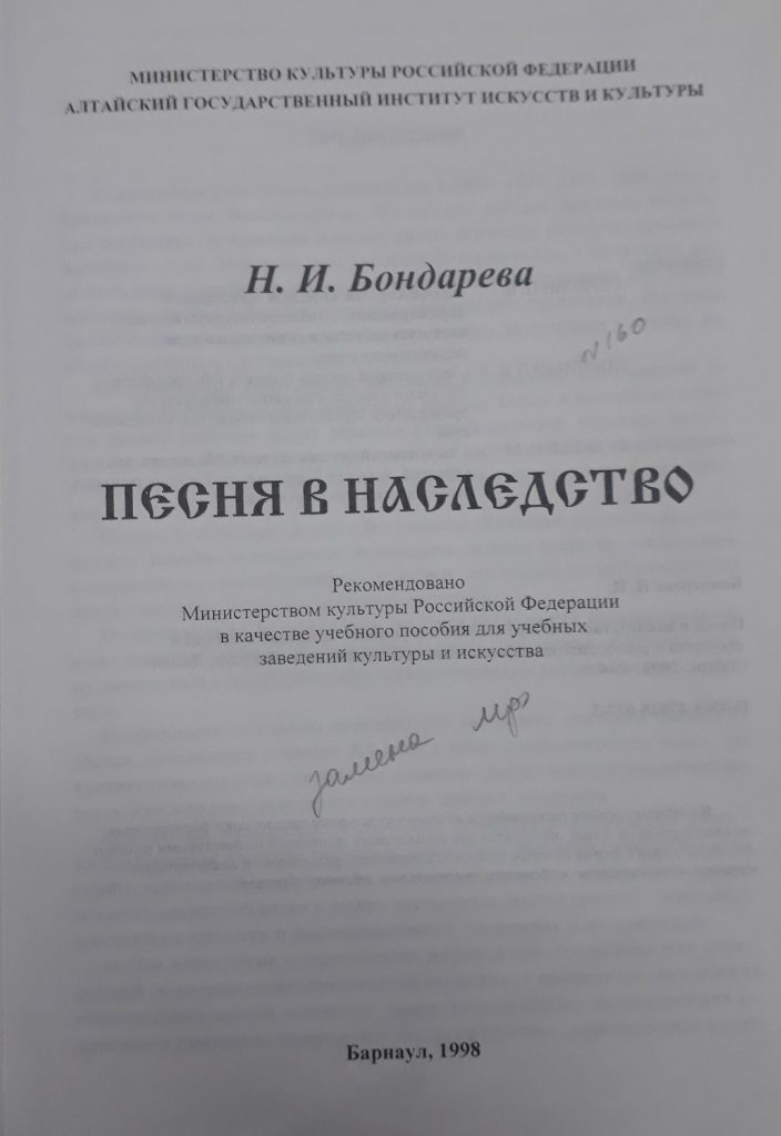 Бондарева Н. И. Песня в наследство, (3)
