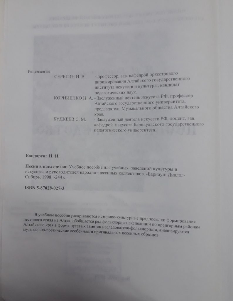 Бондарева Н. И. Песня в наследство, (5)
